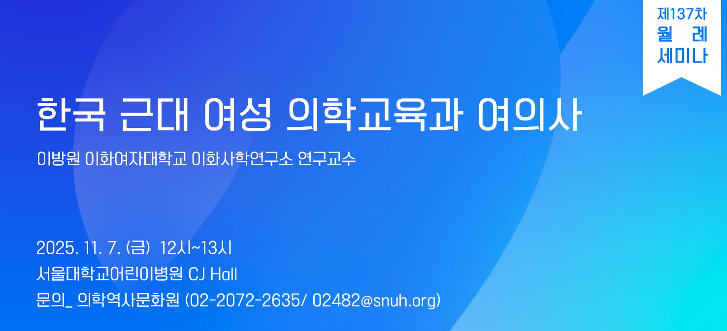 [제137차 의학역사문화원 월례세미나]한국 근대 여성 의학교육과 여의사(11/7,금) 2025-10-20