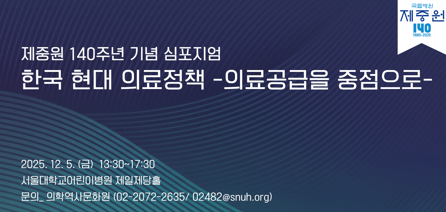 [제중원 140주년 기념 심포지엄]한국 현대 의료정책 - 의료공급을 중점으로(12/5,금) 2025-11-10